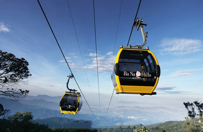 - 08h00: Car and guide pick guests up at hotels and travel the resort Ba Na - Hills at a height of 1.487m is compared to sea level (This is the luxury resort of France in the 1900s). Guests arrive Ba Na Hills's the reception station, began the journey forward the mountain by the world's longest cable car - the height difference between the two largest station in the world. Stop at Station 3 with a height of 1.138m.